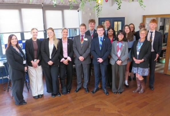 6th form students and teachers from Warwick, Kings High, Myton & Kingsley schools with President Jon Wassall centre.
